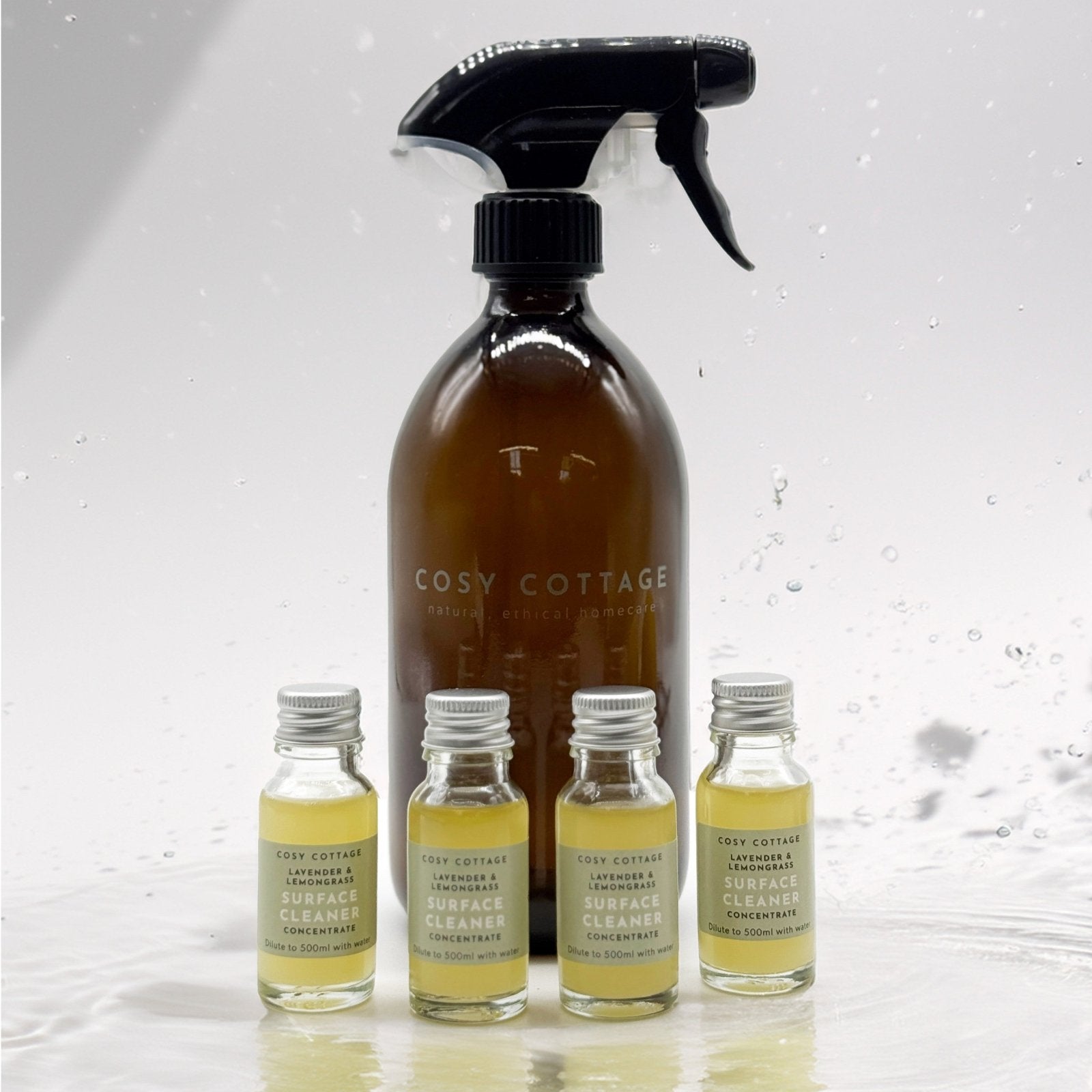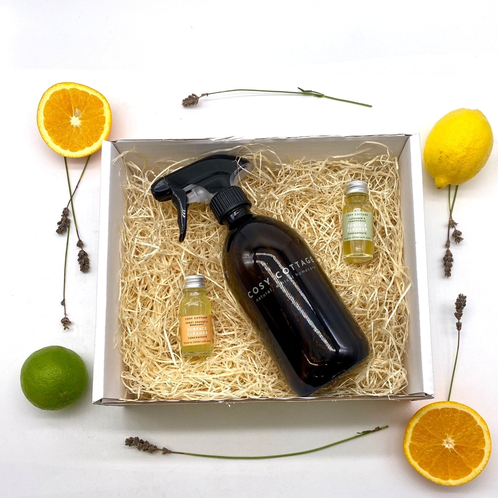 We have created a selection of starter packs including both our original lavender & lemongrass and our sweet orange & bergamot concentrates to enable customers to make the switch from traditional petroleum and palm oil based non-biodegradable cleaning products to our new natural, biodegradable surface cleaning spray, created from a unique blend of the very latest in biosurfactants together with anti-microbial essential oils.