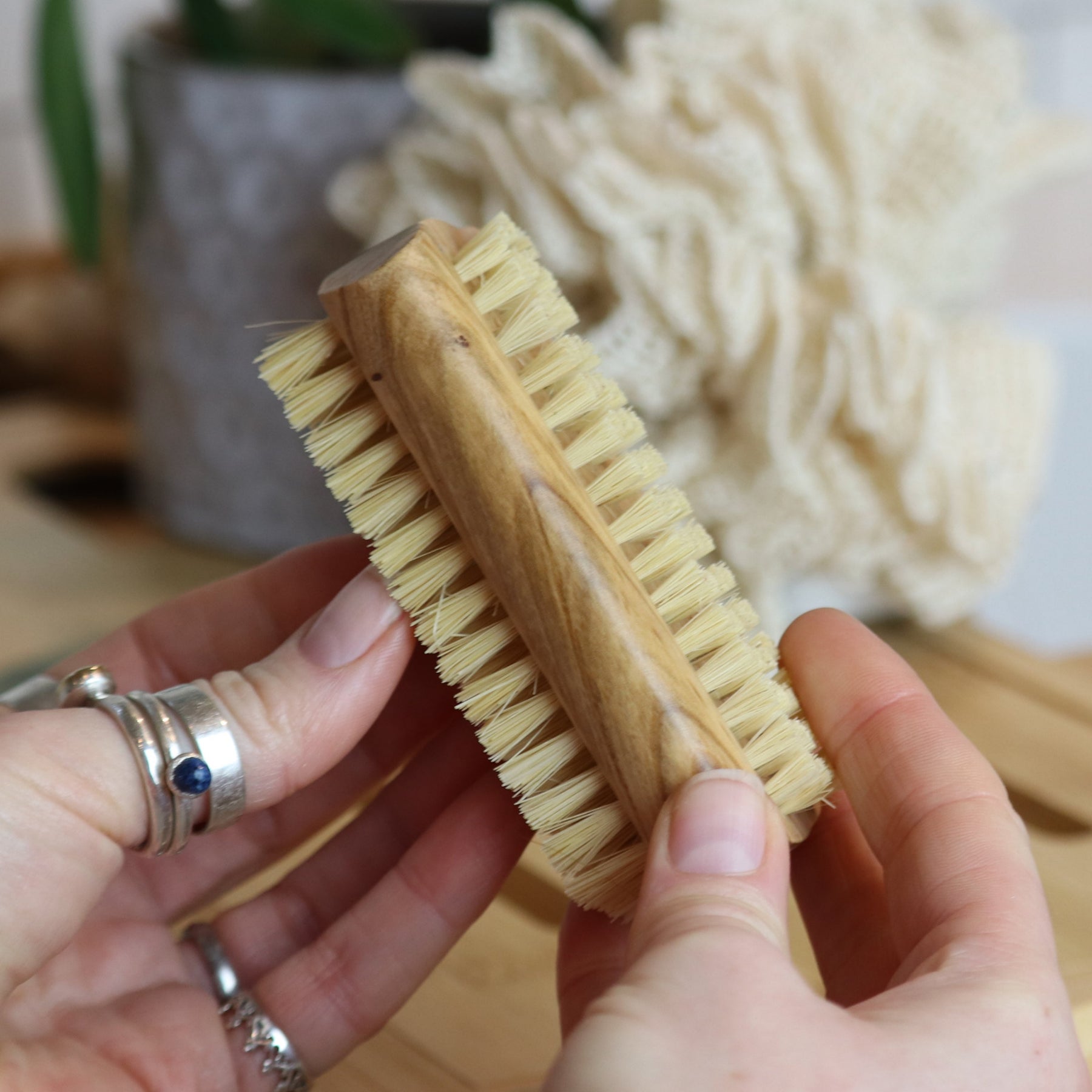 1 x Olive Wood Nailbrush with Cactus Bristles