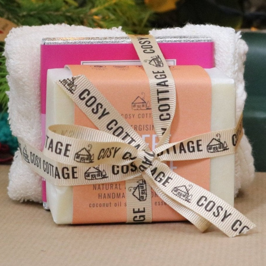 Hand-tied, with into an attractive, gifting bundle with a milk chocolate square and one of our super-soft, organic cotton 30cm x 30cm facecloths, these gifts are certain to delight, time after time.