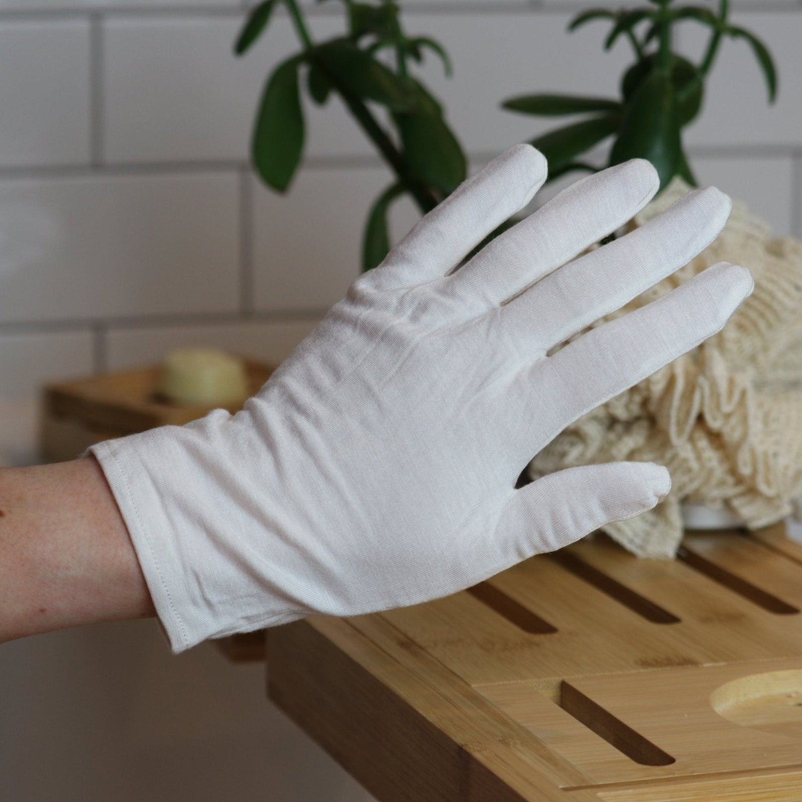 Pair of bamboo moisturising gloves