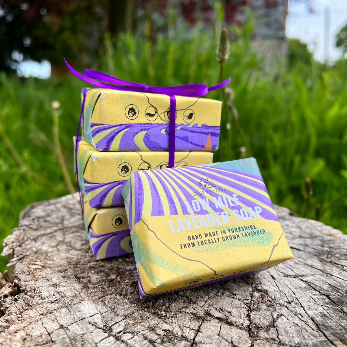 We are delighted to offer our customers these limited edition, 'Low Mile' soaps, made with distilled lavender essential oil, made from lavender flowers from glorious Yorkshire. These special, natural, low-mile, palm oil free soaps, are a beautiful evocation of the Yorkshire countryside within which we live and work.