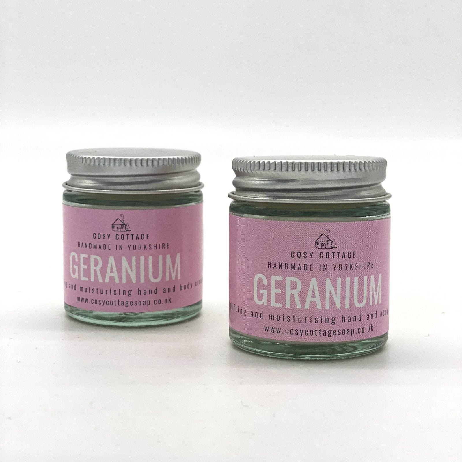 Uplifting Geranium Hand & Body Cream (with optional bamboo gloves) - Cosy Cottage Soap